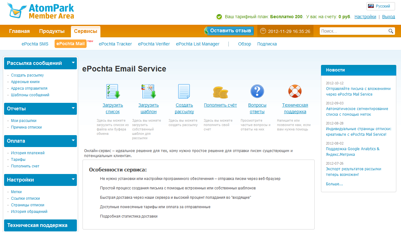 Проверьте сервис ePochta Mail Service, как говорится, "на прочность" прямо сейчас, зарегистрировавшись и получив первые 3000 бесплатных сообщений для профессиональных рассылок. Нам будет интересно и приятно услышать ваше мнение о ePochta Mail Service – оставляйте свои отзывы и предложения. Возможно, наш онлайн сервис станет еще лучше именно благодаря вам.