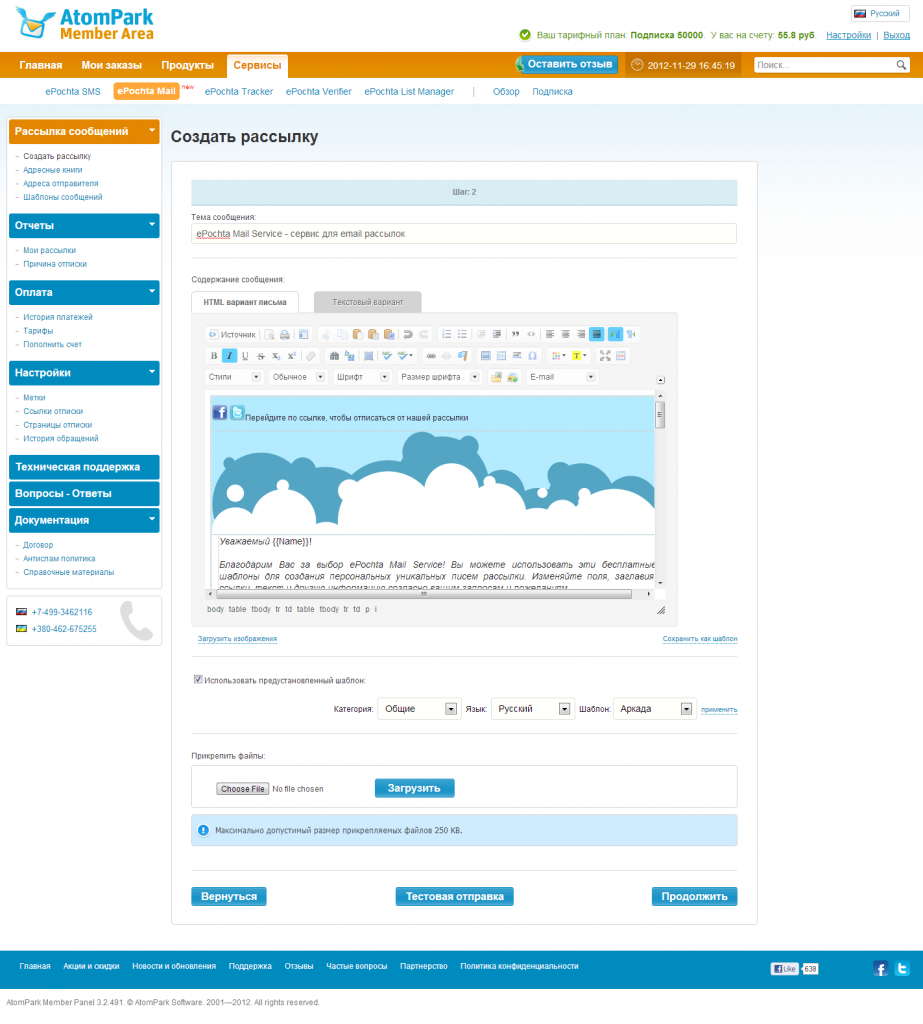 ePochta Mail Service способен превратить каждую вашу email кампанию в произведение искусства благодаря встроенным готовым шаблонам, персонализации и возможностям мощного HTML редактора.
