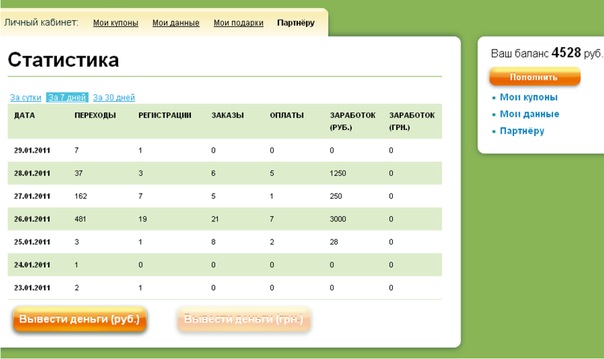 Должен похвастаться, что я не поддался искушению получить немедленное вознаграждение и зарегистрировался в партнерской программе. Я пригласил всех своих друзей и знакомых в социальных сетях. Большинство с радостью приняли мое предложение, и я стал постепенно зарабатывать. По моей статистике каждый реферал приносит 15-20 рублей в месяц. Сейчас у меня около 200 рефералов, которые являются источником неплохого пассивного дохода.