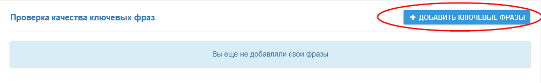 Заходим в раздел “Проекты”, листаем страницу вниз, и нажимаем “Добавить ключевые фразы”.