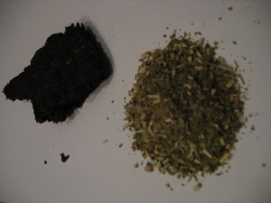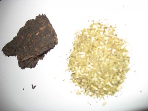 Спешу разочаровать. К наркотикам и подобным вещам это не имеет никакого отношения. На картинке изображено всего навсего грамм 50 прессованного чая пуэра и пол одной заварки травы матэ.