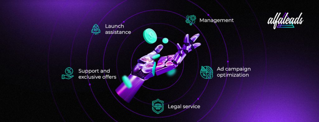 Alfaleads работает с 2016 года и давно зарекомендовала себя на рынке, как стабильный партнер с настоящей экосистемой для работы вебмастеров! В партнерской программа представлены топовые офферы разных вертикалей, таких как iGaming, Betting, Dating и Crypto. Alfaleads — это не просто платформа с офферами. В компании есть свой финансовый отдел, юридическая служба, а также медиабаинг и R&D, которые готовы делиться связками с партнерами и помогать с запусками рекламных кампаний. У компании более 100 000 партнеров со всего мира!