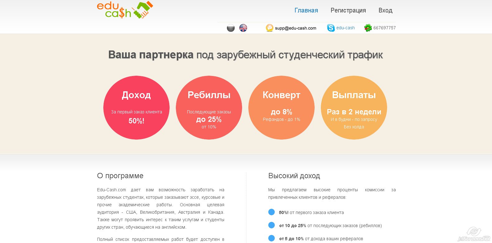 Если Вы ищите куда податься в наше непростое для вебмастера время, ниша essay и партнерская программа Edu-Cash - лучший выбор!