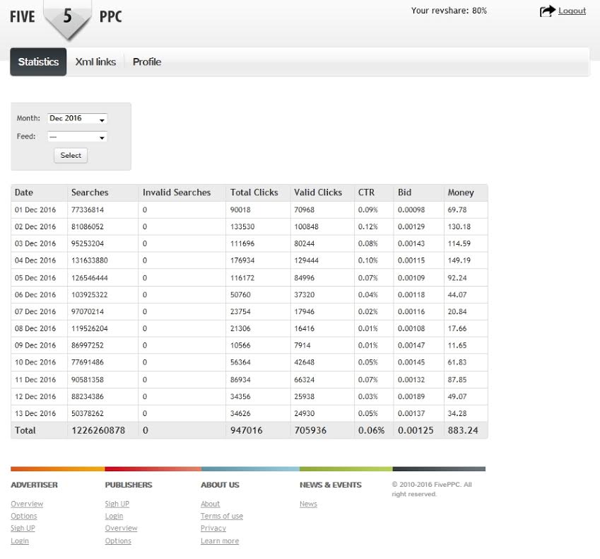 Бид паблишера (по простому вебмастера) зависит от его трафика. Система сама тестирует несколько кликов паблишера, устанавливает автоматически бид. Трафик должен проходить все фильтры. Также важно, что FIVEPPC не арендуют ничью платформу, а работают на своей собственной базе: вся система фильтрации, статистика и админки прописаны программистами компании.