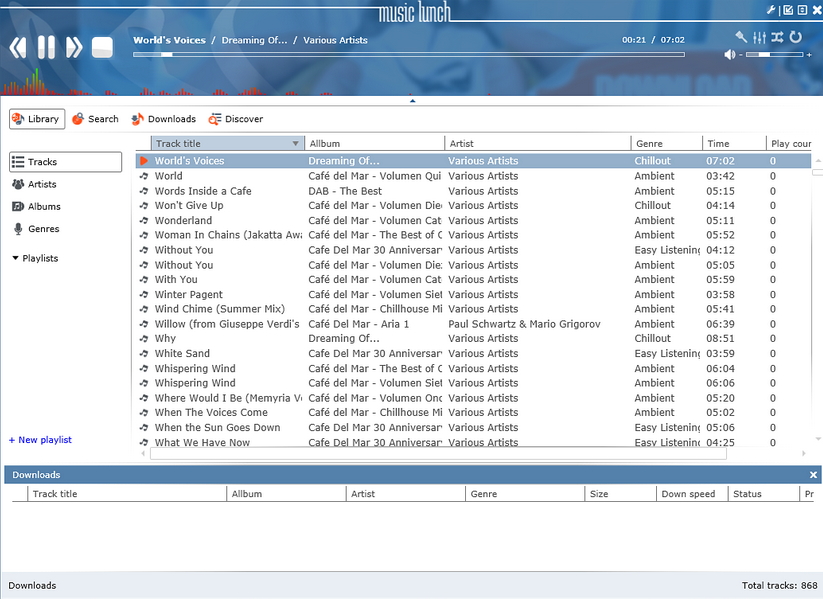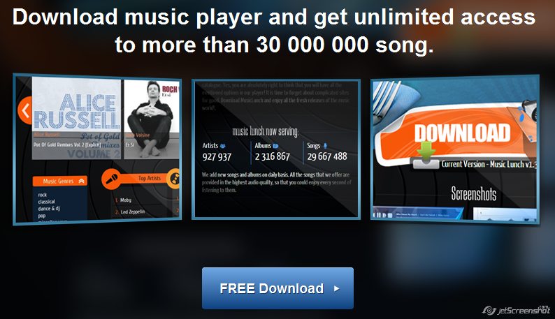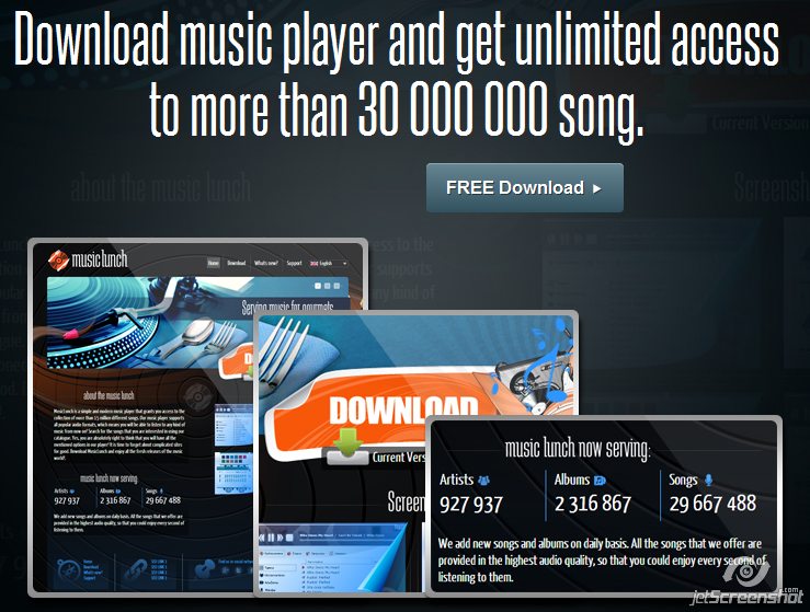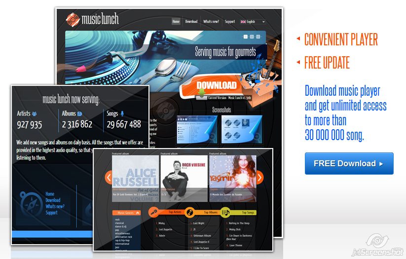 • affiliate-musiclunch-comПлеер, как и сайт, переведен на 6 языков. Причем главный сайт автоматически определяет гео и показывается на нужном языке. Соответственно, можете весь русский, английский, немецкий, итальянский, испанский музыкальный трафик сливать на эту партнерку. Вот так выглядит его сайт - http://musiclunch.com/. Вот так он выглядит.