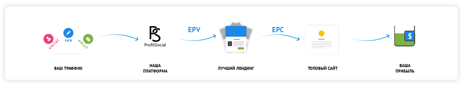 Хорошо бы просто брать и лить весь поток трафика, все устройства, все гео на одну ссылку, где система будет сама распределять трафик на самые подходящий оффер для конкретного таргетинга. Партнерская программа ProfitSocial как раз предоставляет такое решение.