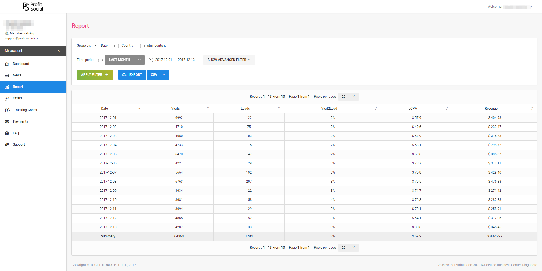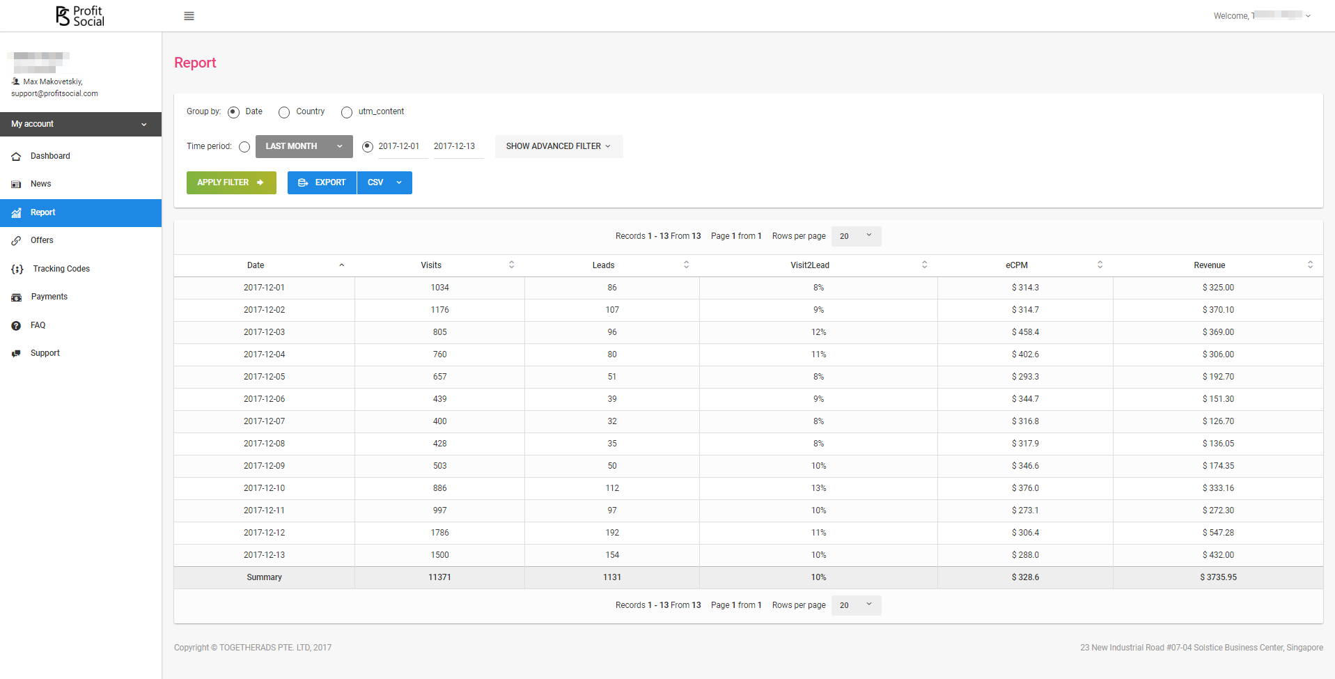 • Учитывая, что офферы свои - ProfitSocial может платить больше стандартных рейтов. Если Ваш трафик будет качественный и в нормальных объемах, подъем стоимости лида сможет Вас приятно удивить.