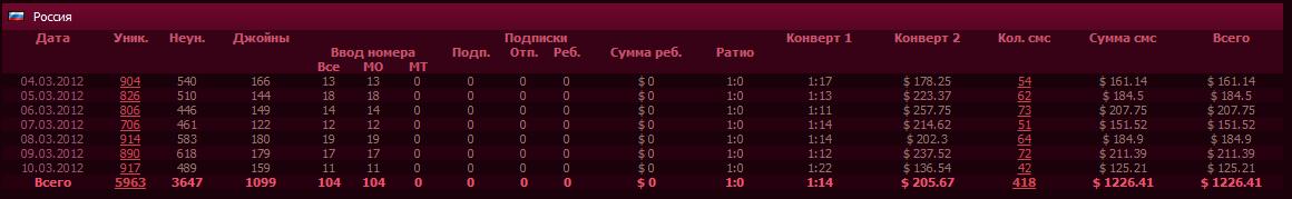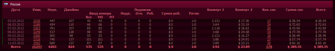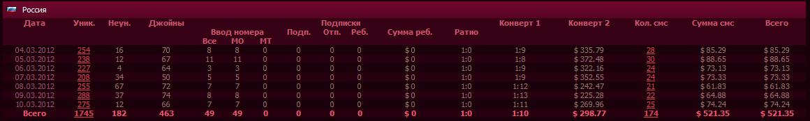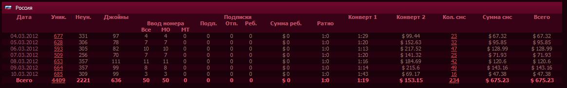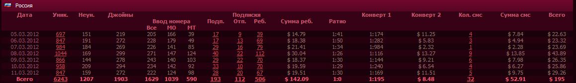 SeriousPartner уже выпустила свою третью версию с новыми и обновленными имеющимися платниками. Остовная специализация - дейтинг трафик. Наверное нет и не было партнерской программы в рунете, у которой бы так хорошо конвертился дейтинг. Но это далеко не одна тематика платников. Вот общая стата среднего партнера по системе: