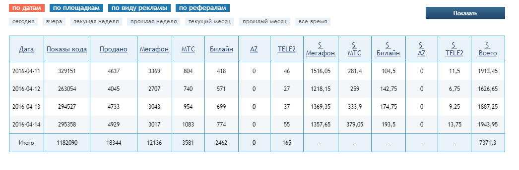 По всем вопросам обращайтесь к саппорту, icq: 509905 или skype: wap-traff.