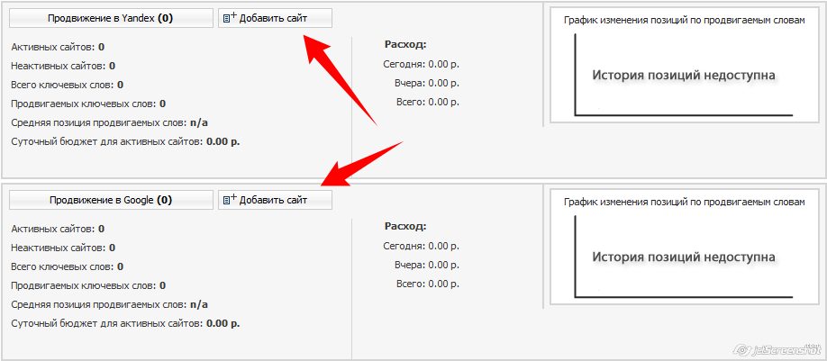 Ключевые слова по которым ваш сайт находиться в Yandex или Google на позициях от 2 до 50 могут быть добавлены в систему для продвижения. Давайте на личном примере рассмотрим, как просто работать с системой. Для начала зарегистрируемся и войдем на главной странице. После того,как мы зашли в админку, система сразу просит нас добавить сайт в форме. Ну что же, давайте это сделаем. Добавляю свой блог для продвижения в Google, регион выбираю Россия.