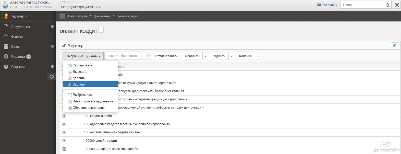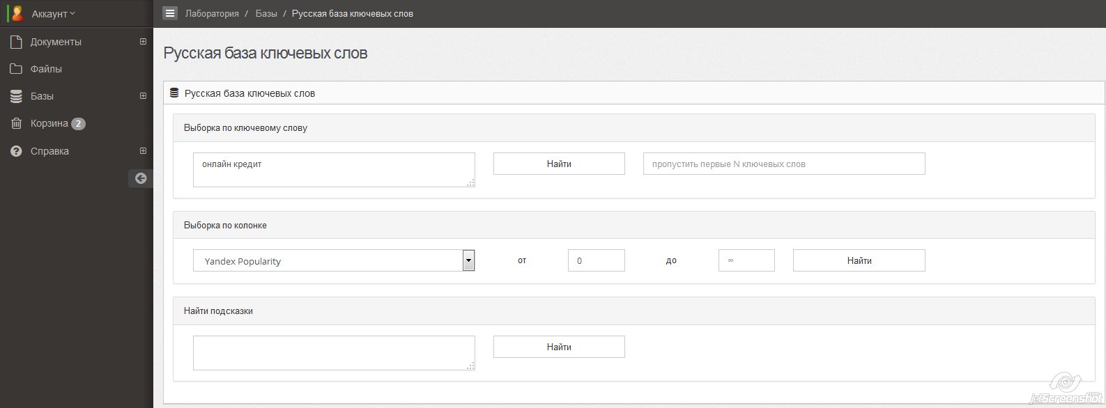 - Доступен свежий хелп по онлайн базам с полным руководством, например, Как сделать выборку ключевых слов, Как получить цену клика для ключевых слов, Как получить список самых дорогих ключевых слов и т.д.