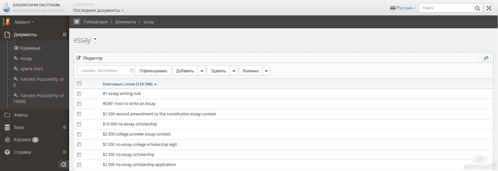 - Доступно два онлайн интерфейса онлайн баз ключевых слов Пастухова - на английском и русском языках.